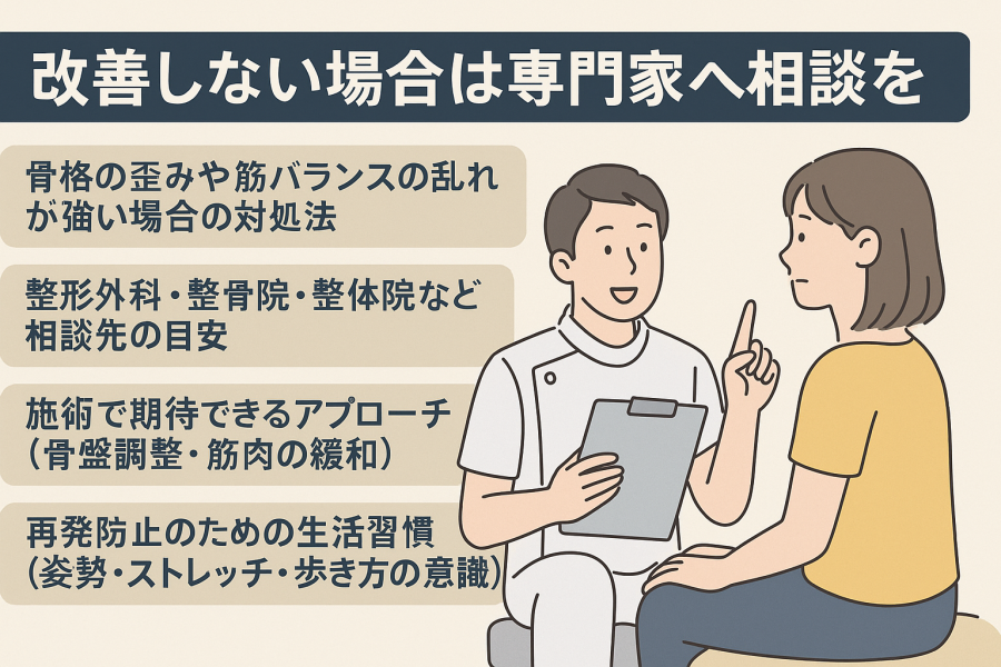 この場合は、骨格のゆがみを整え、筋肉のバランスを再教育する専門的なアプローチが必要になることがあります。