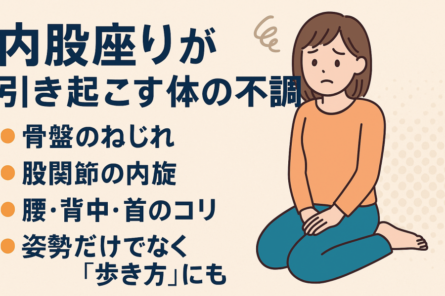 このように、内股座りは単なる「癖」ではなく、姿勢や体の不調に直結するリスクがあるため、意識的に改善していくことが大切です。