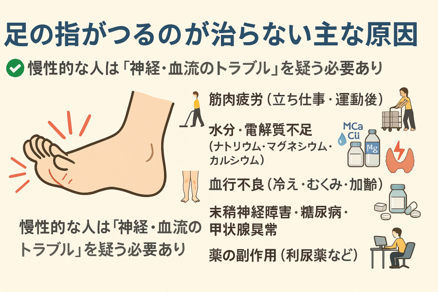 「ストレッチや水分補給をしても、なかなか足の指がつるのが治らない…」