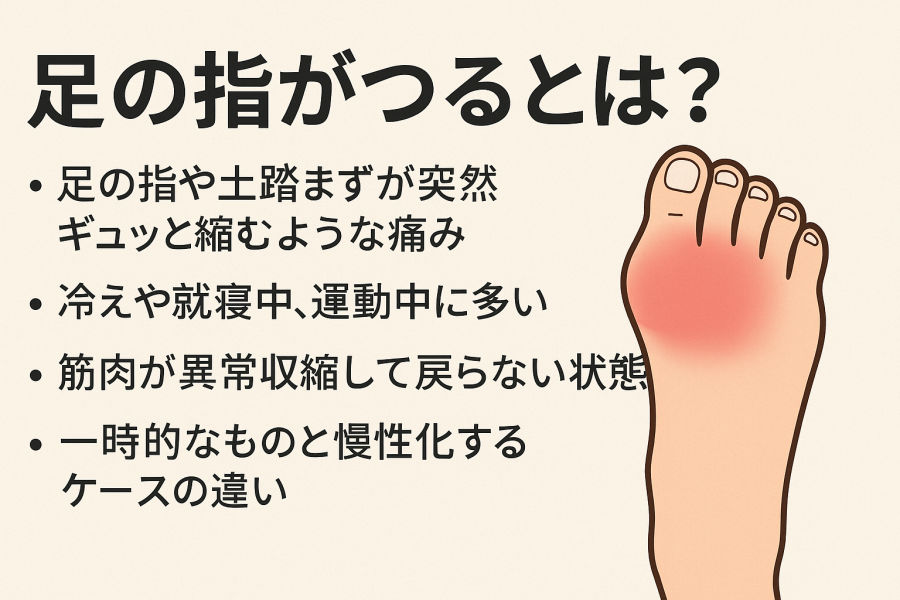 足の指がつるのは「ただの疲労」と思われがちですが、体の状態を教えてくれるサインであることも少なくありません。