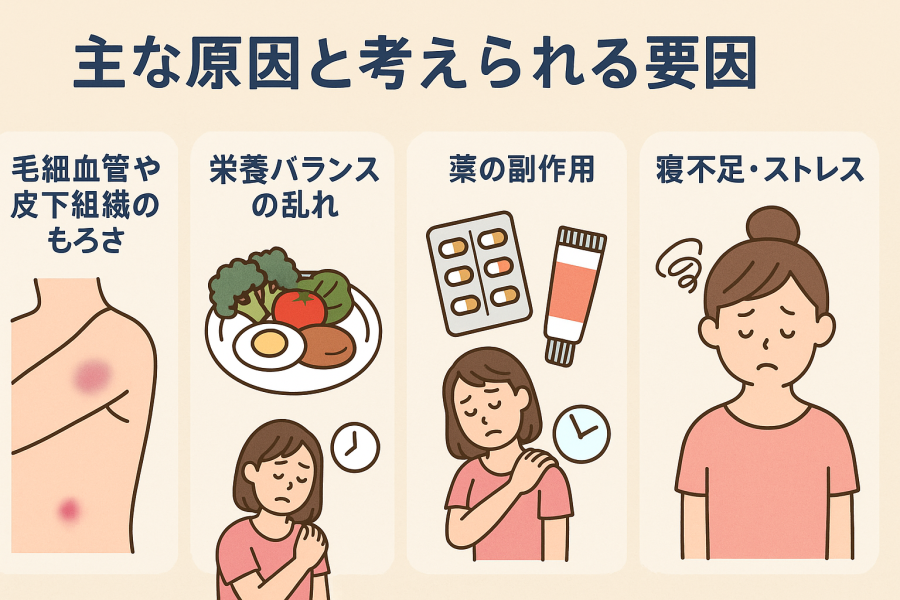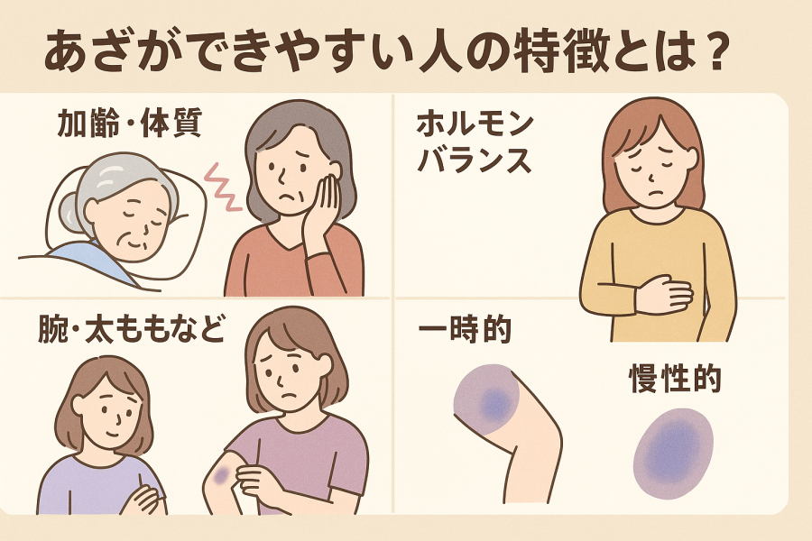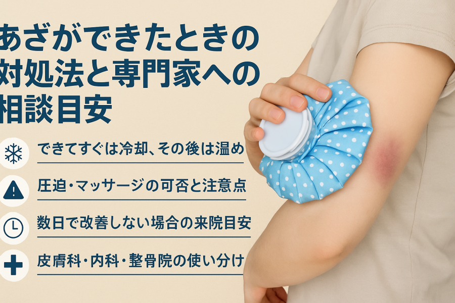 「気づいたらあざができていた」「痛みはないけど紫っぽい跡が消えない」――そんなとき、慌てずに適切な対応を取ることが大切です。