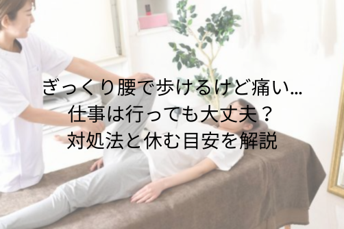 ぎっくり腰というと、全く動けなくなるイメージを持つ方も多いかもしれません。しかし実際には、歩くことはできても痛みが出る状態になることもあると言われています。