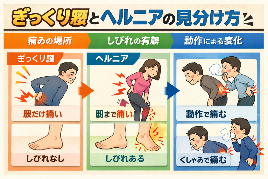 このように、感じ方そのものが違う腰のトラブルと説明されることが多いようです。