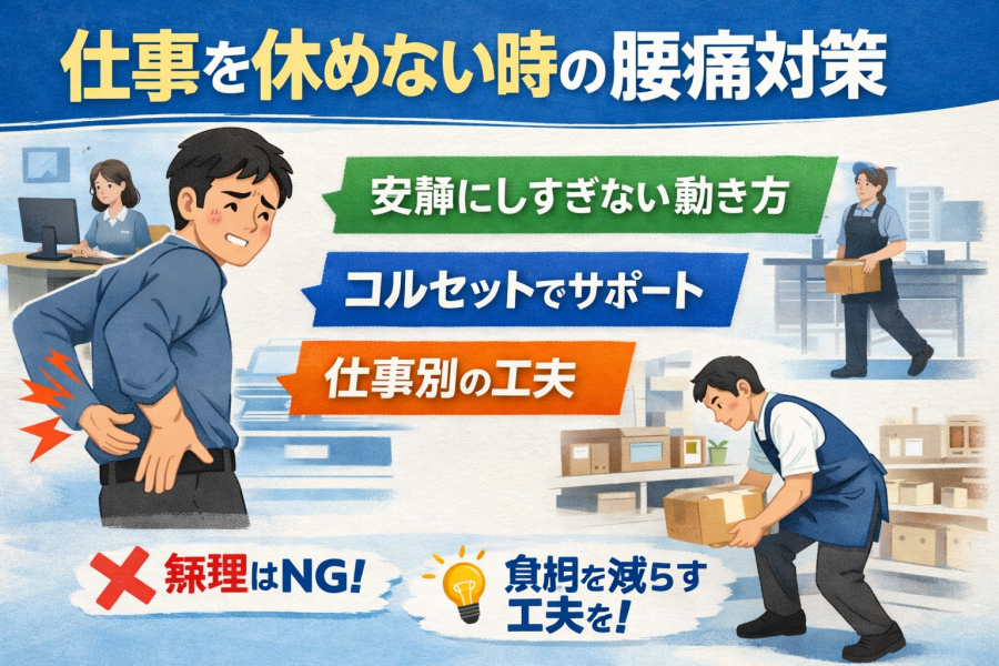 「腰がつらいけど、仕事は休めない…」そんなときは、まったく動かないより、痛みが強くなりにくい範囲で少しずつ体を動かすほうがよいと言われています。日本の腰痛診療ガイドラインでも、急性の腰痛では長く寝込むより、できる範囲で日常生活を続ける考え方が示されています。