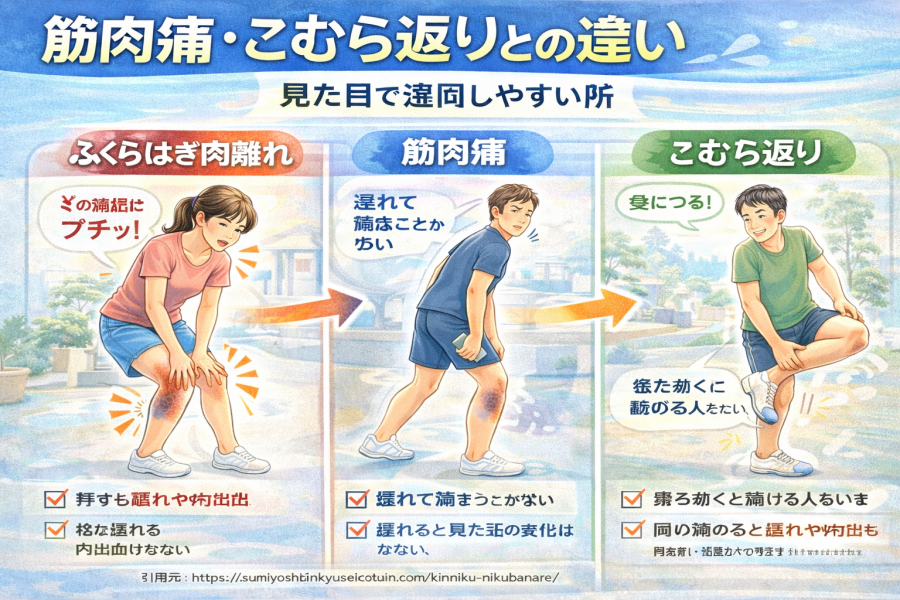 筋肉痛・こむら返りとの違い(「見た目」で混同しやすい所)