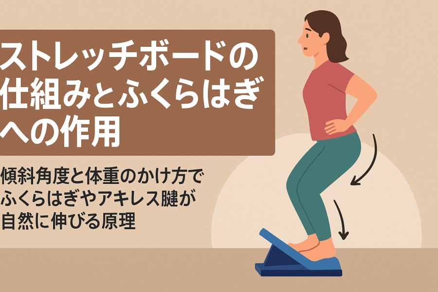 このように、ストレッチボードは仕組み自体はシンプルですが、傾斜と体重を利用することで効率的にふくらはぎやアキレス腱を伸ばし、柔軟性や血流の改善に役立つ可能性があると言われています。自宅で手軽に取り入れられるため、運動不足を感じる方にもおすすめです。