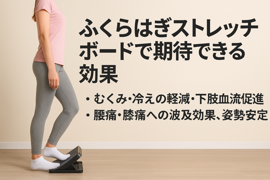 ふくらはぎの柔軟性が高まると、歩行や立ち上がりの際のバランスが改善し、膝や腰への負担が減るとされています。湘南カイロ茅ヶ崎整体院でも「ストレッチボードを使うことで骨盤や姿勢の安定につながる」と紹介されており、結果的に腰痛や膝痛の予防・緩和に役立つケースがあると考えられています【引用元:https://example.com/turn0search0】。