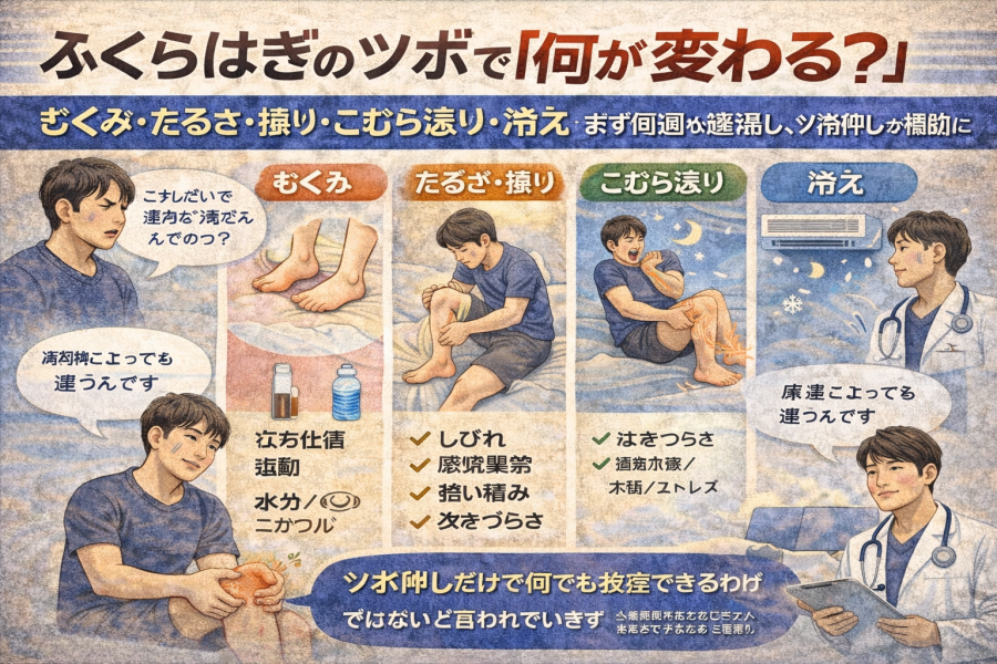 むくみ・だるさ・張り・こむら返り・冷え/まず原因の当たりをつけて、ツボ押しを“補助”として使う