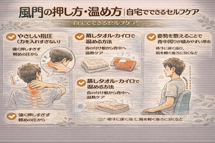 風門の押し方・温め方|自宅でできるセルフケア