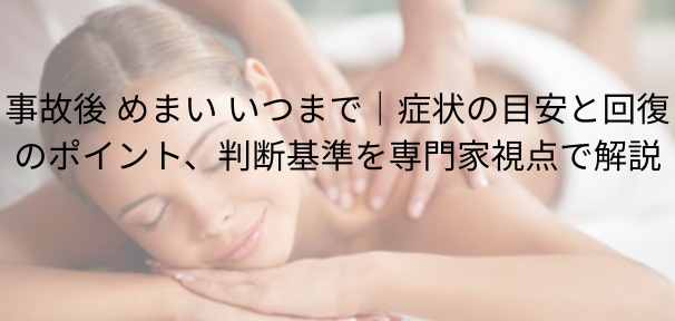 事故後のめまいは、数日〜数週間で軽くなることが多いとされています。ただ、