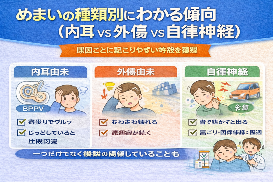 めまいの種類別にわかる傾向(内耳 vs 外傷 vs 自律神経)