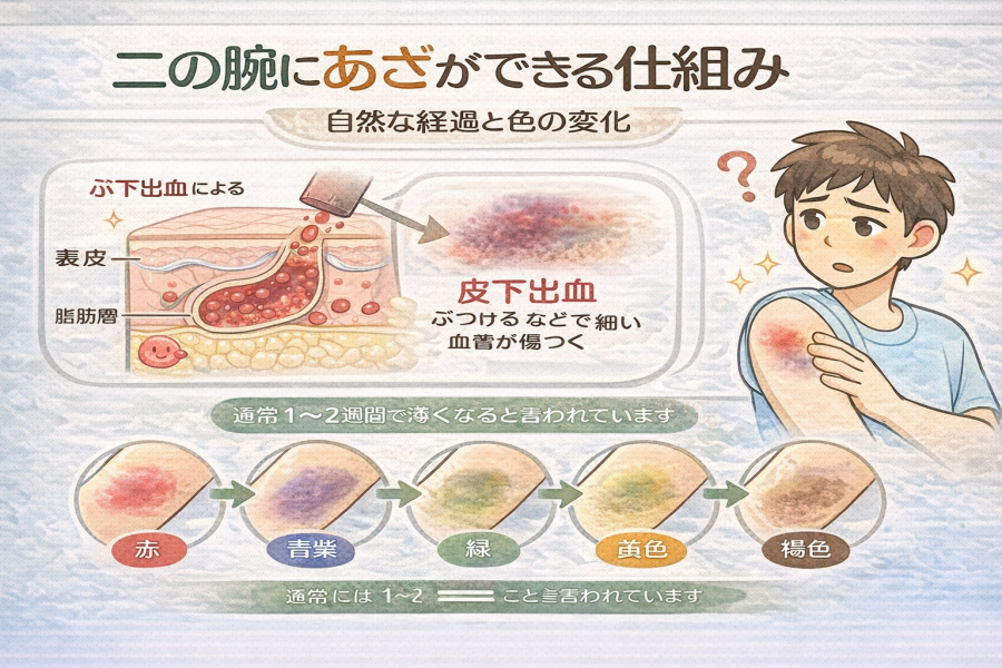 1:二の腕にあざができる仕組み|自然な経過と色の変化