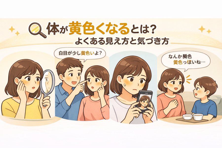 こうした違和感から、“体が黄色くなる”ことに気づく人は少なくないようです。皮膚・白目・顔色が黄色っぽく見える状態とは