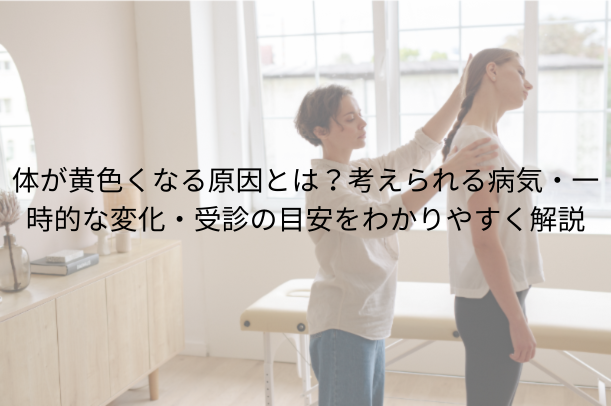 体の黄ばみだけでなく、全身の状態も含めて変化が目立つときには、「様子を見過ぎないこと」が大切だと言われており、不安が続く場合は早めに専門家へ相談し、来院のタイミングを検討していく流れが一般的です。#体が黄色くなる
