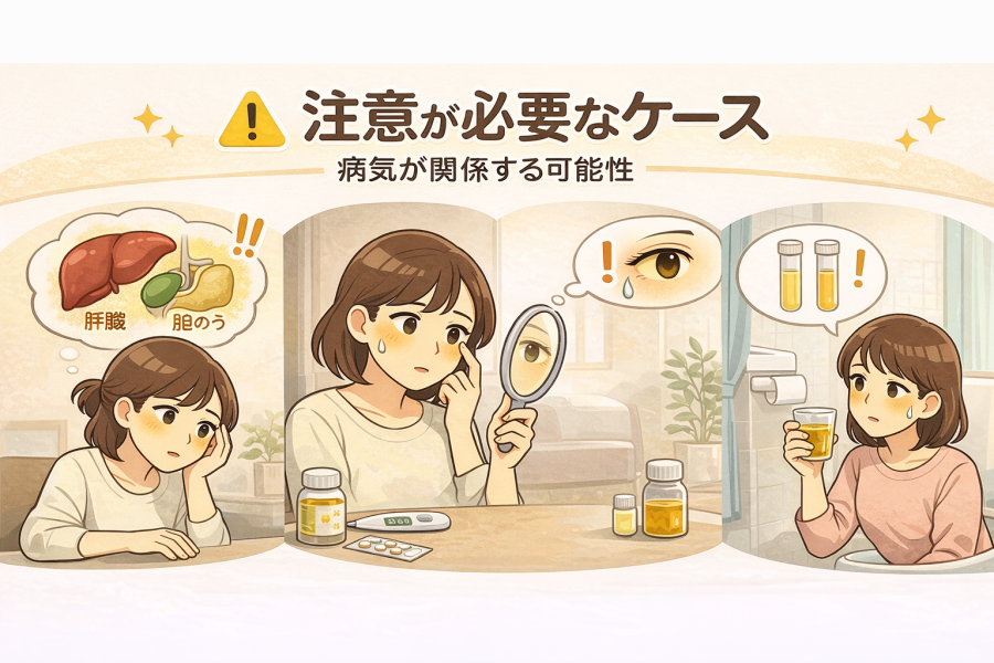 #気づきのポイント② 体が黄色くなる主な原因|一時的なものから体調変化まで