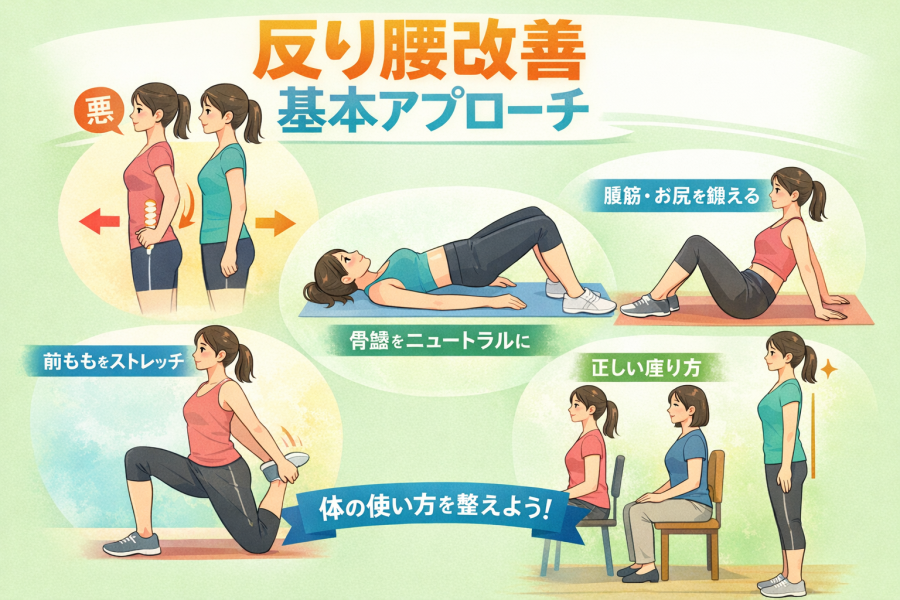 そんなときは、“やり方”よりも“考え方”を見直すタイミングかもしれません。反り腰の改善は、単に伸ばす・鍛えるだけではなく、骨盤の位置や体の使い方を整えることがポイントと言われています。特に、偏っている筋肉の使い方をリセットして、全体のバランスを取り戻す意識が大切です。ここでは、無理なく取り入れやすい基本のアプローチを整理していきます。