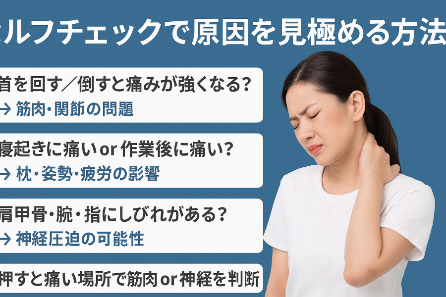 セルフチェックで「いつ・どこが・どう痛むか」を整理するだけで、原因の方向性が見えてきます。