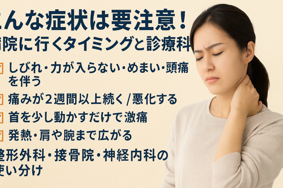 実は、首の痛みは筋肉のこりだけでなく、神経や関節、炎症など重大な原因が隠れていることもあると言われています。ここでは、放置してはいけないサインと、受診すべき診療科、病院でできる検査や治療法をわかりやすく解説します。