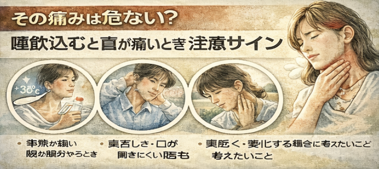 その痛みは危ない?唾飲み込むと首が痛いときの注意サイン