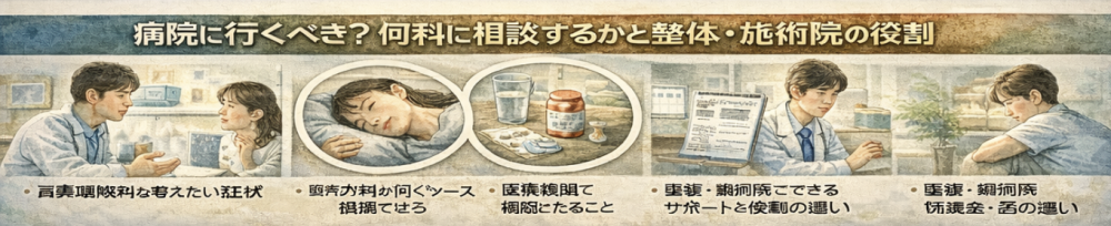 病院に行くべき?何科に相談するかと整体・施術院の役割