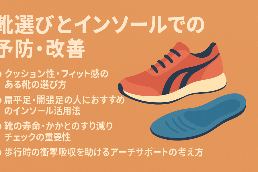 ここでは、日常的にできる靴選びとインソールのポイントを紹介します。