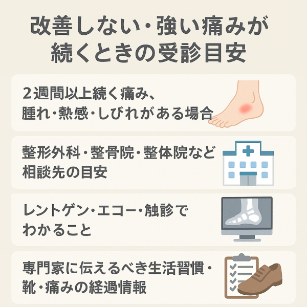 • 専門家に伝えるべき生活習慣・靴・痛みの経過情報