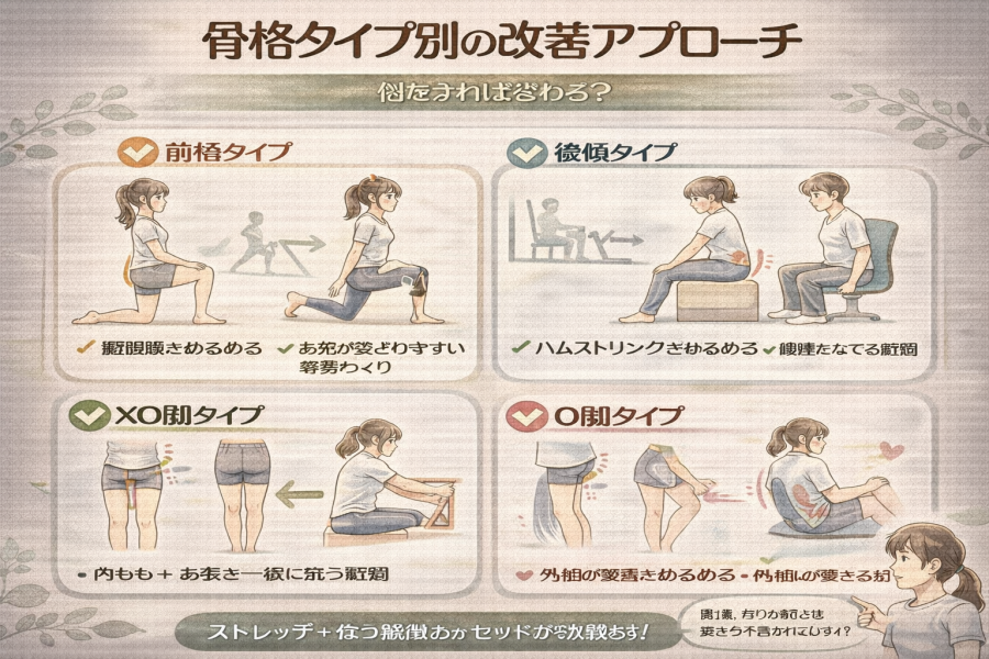 #前もも張り対策**骨格タイプ別の改善アプローチ|何をすれば変わる?