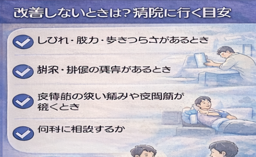 #病院に行く目安 #整形外科 #しびれ #排尿排便異常 #夜間痛