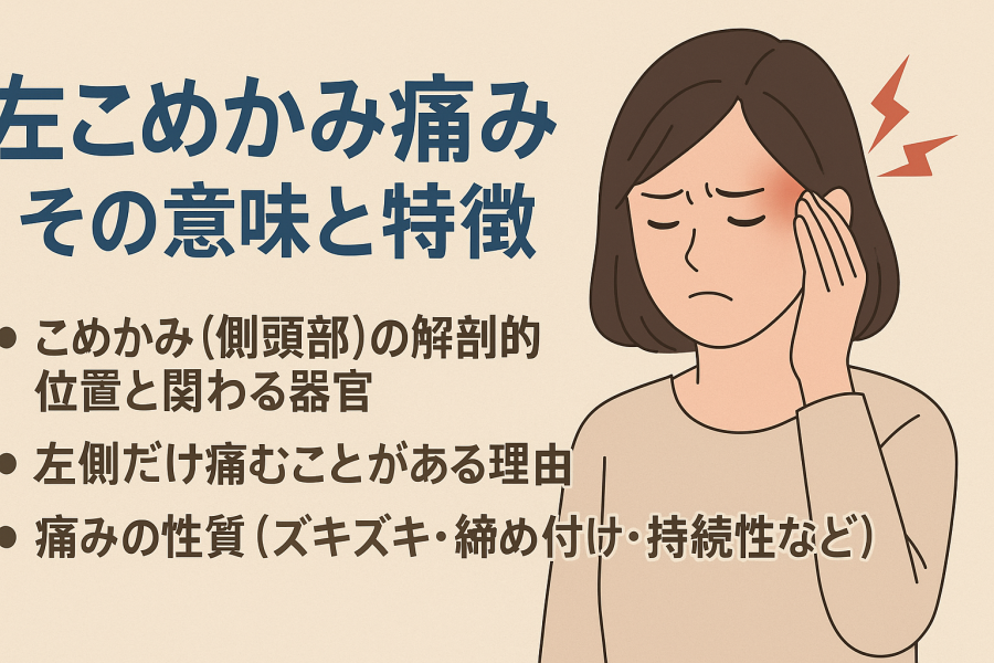 「左こめかみがズキズキする」「片側だけ重苦しい感じが続く」──そんな経験をしたことはありませんか。こめかみは頭痛の中でも症状が現れやすい部位のひとつであり、痛みの意味や背景を知ることは原因を探る手がかりになると言われています。