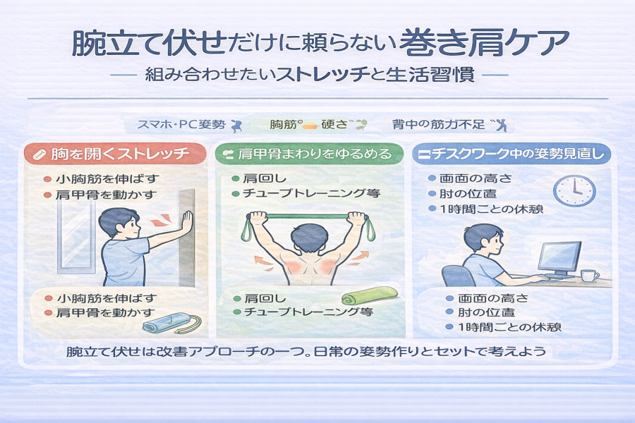 5:腕立て伏せだけに頼らない巻き肩ケア|組み合わせたいストレッチと生活習慣
