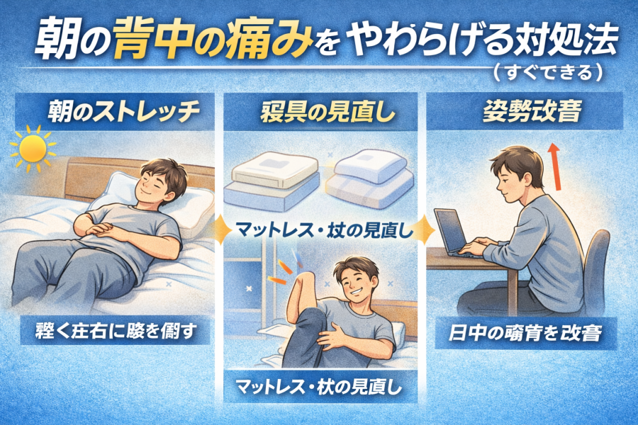「結局、寝てる間の問題?」と思いきや、日中の積み重ねが朝に出るケースもある、というイメージが近いかもしれません。#朝起きると背中が痛い