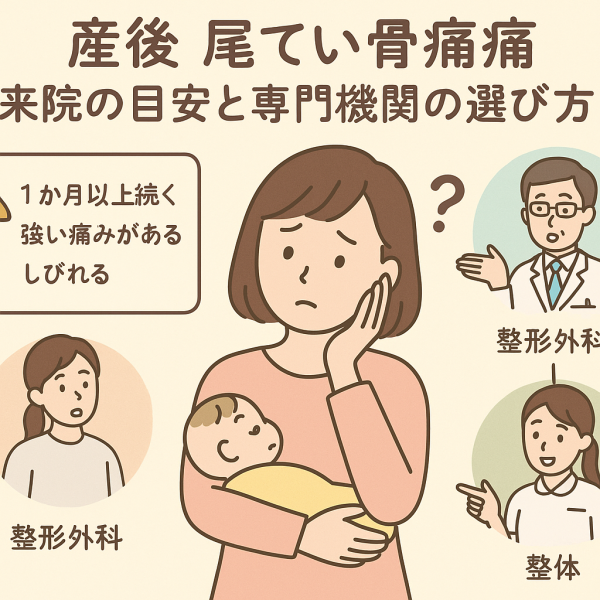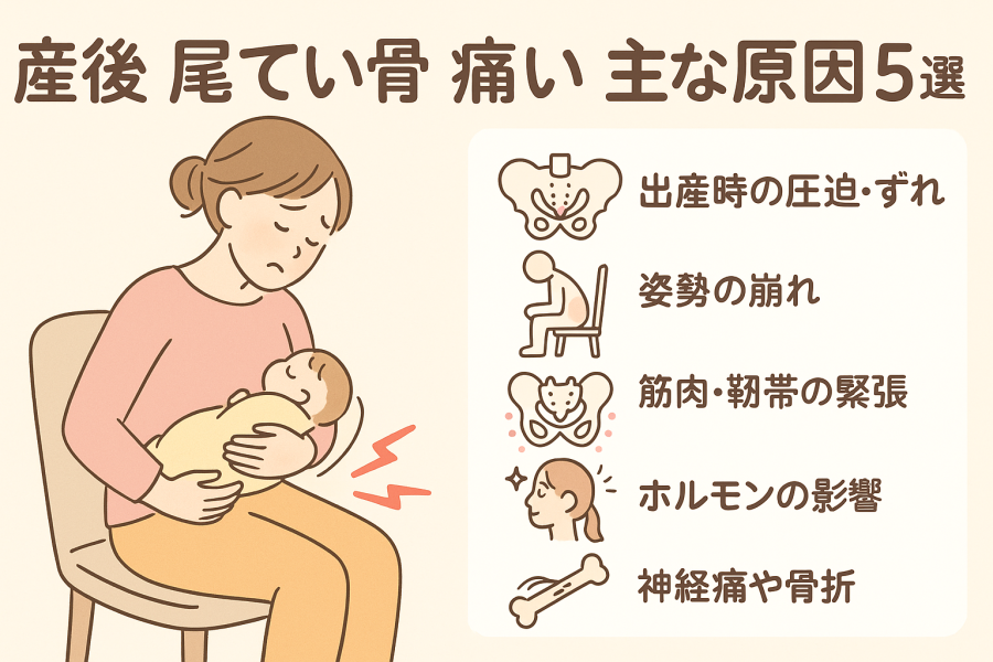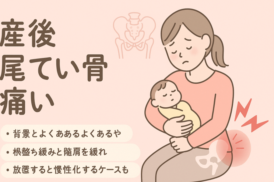 また、授乳・抱っこ・家事の際の「前かがみ姿勢」が続くことで、仙骨まわりの筋肉に緊張が生じ、尾てい骨に負担が蓄積するケースも多いようです。