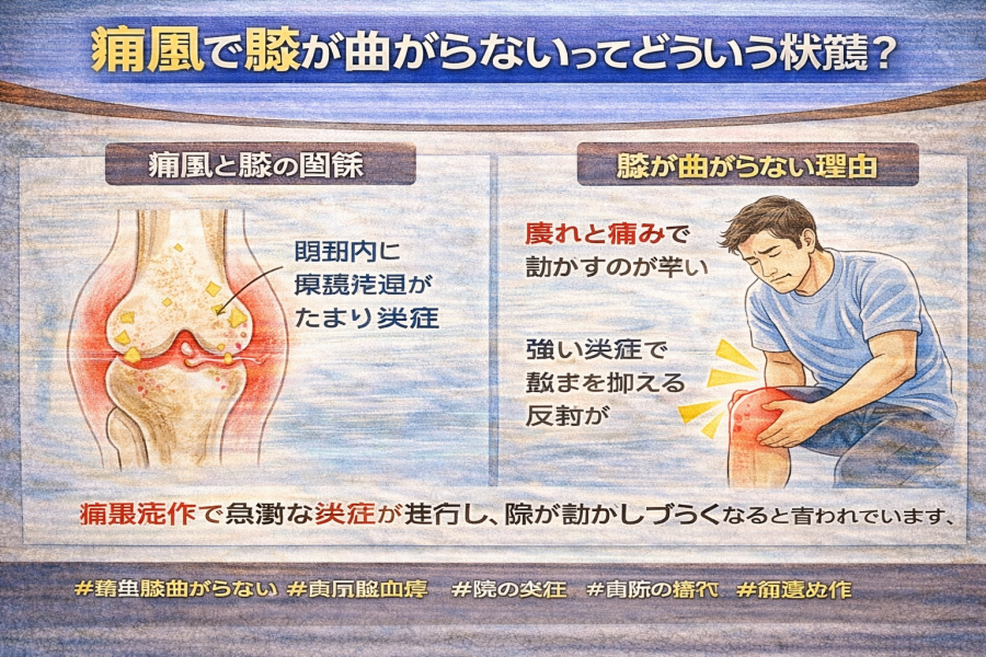 痛風のときに膝が曲がらなくなる要因として、以下のような視点が挙げられます: