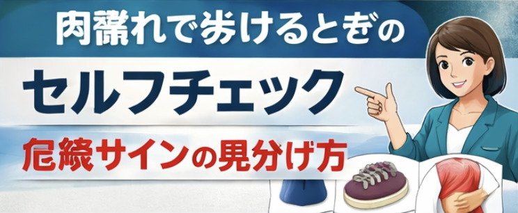 「これって放っておいていいの?」と迷いますよね。歩ける肉離れでも、状態によっては注意が必要なケースもあります。ここではセルフチェックのポイントをわかりやすくお伝えします。
