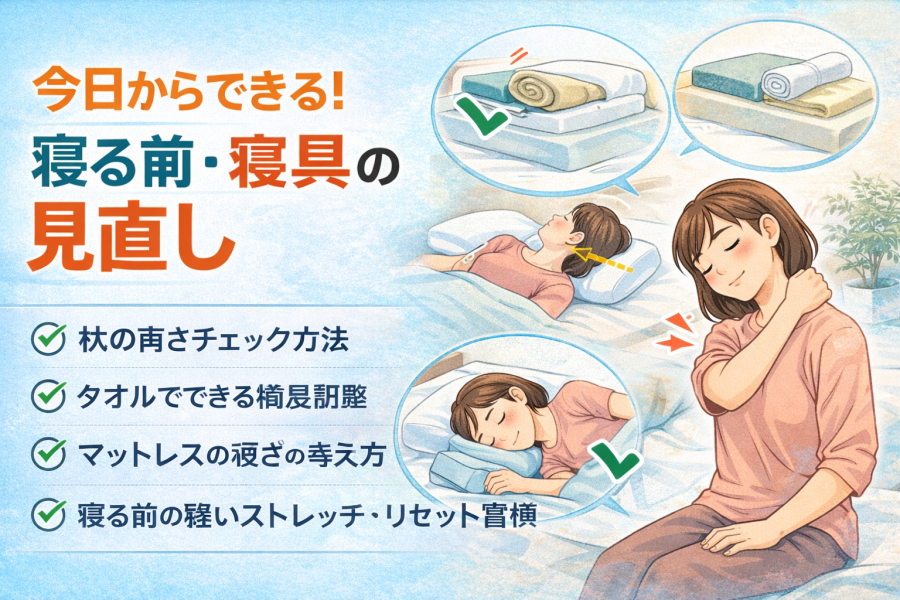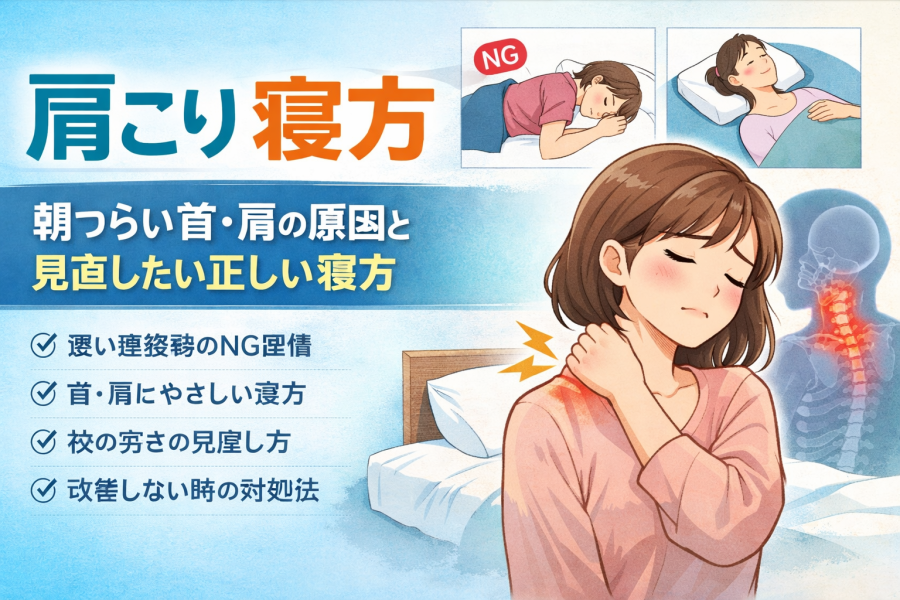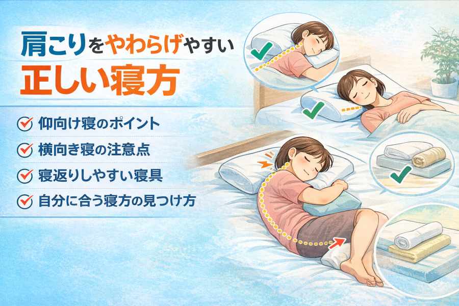 #肩こり寝方 #朝の肩こり原因 #枕の高さ見直し #首肩に負担の少ない寝姿勢 #改善しない肩こりは早めに相談