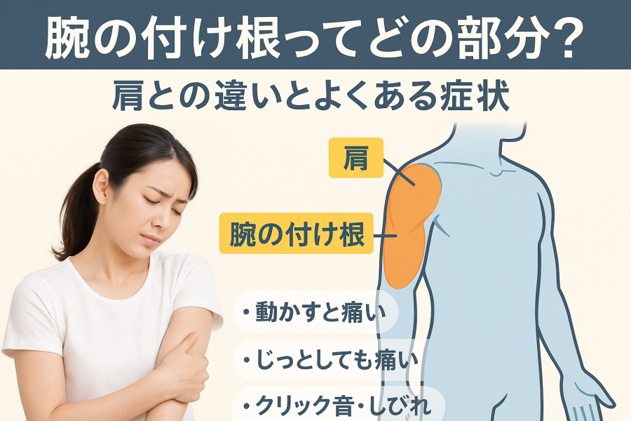 「腕の付け根が痛い」と感じたとき、多くの人が“肩なのか?腕なのか?”と迷います。実は肩(肩関節)と腕の付け根は微妙に位置が異なると言われています。ここではわかりやすく違いを整理しながら、痛みや不調が出やすい特徴を解説します。