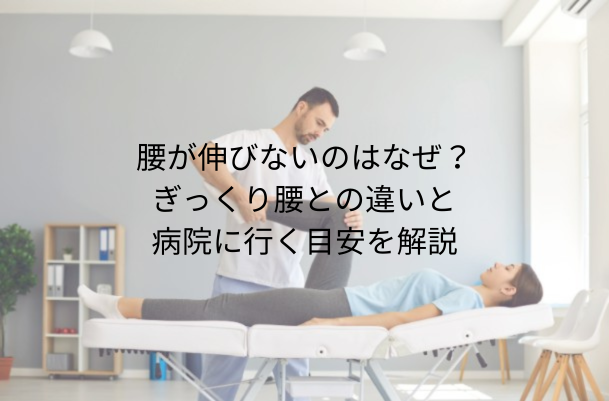 腰が伸びないときは、「ただの腰痛かな」と思っても、実際には急に強い負担がかかって腰まわりがうまく動かせなくなっていることがあります。とくに、前かがみから体を起こせない、立ち上がろうとすると腰が固まる、背すじを伸ばそうとすると強く痛む。こうした状態は、ぎっくり腰のような急性腰痛でよくみられると言われています。腰が伸びないのは、筋肉だけの問題とは限らず、関節や靱帯、椎間板まわりの負担が関係していることもあるんです。だからこそ、まずは無理に伸ばそうとせず、今どんな動きで痛いのかを落ち着いて見ることが大切ですね。