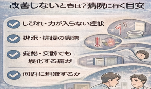 #病院に行く目安 #整形外科 #しびれ #排尿排便異常 #夜間痛