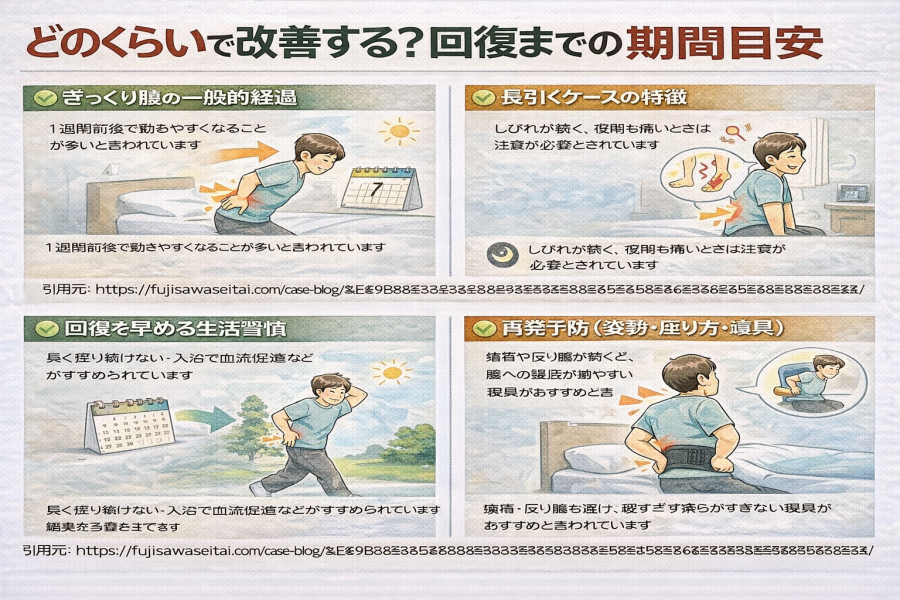 「重たい感じが続いて、腰が伸びきらない」という場合は、筋肉や筋膜の炎症、あるいは過緊張が関係している可能性があると言われています。長時間のデスクワークや中腰姿勢が続くと、血流が滞りやすくなり、こわばりが強くなると考えられています。その結果、腰痛でまっすぐ立てない状態になることもあるようです。