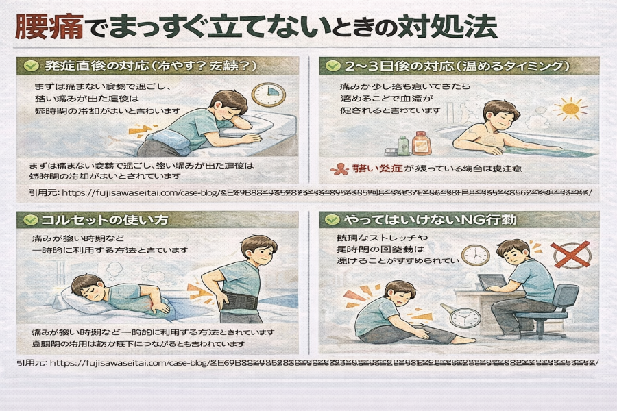 「朝起きたら腰が伸びない…」そんなとき、まず疑われるのが急性腰痛、いわゆるぎっくり腰と言われています。急に強い負担がかかることで、筋肉や関節まわりに炎症が起こり、体をまっすぐにしようとすると痛みが走るケースが多いとされています。特に動き始めに強く出やすいのが特徴と考えられています。