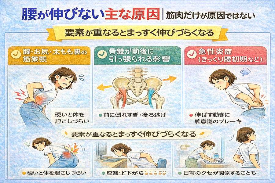 腰が伸びない主な原因|筋肉だけが原因ではない