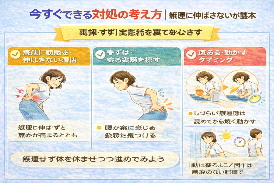 そう考える方は多いですが、実は“無理に伸ばさない”ことが大切な場合もあると言われています。ここでは、今すぐ意識したい対処の考え方を整理します。