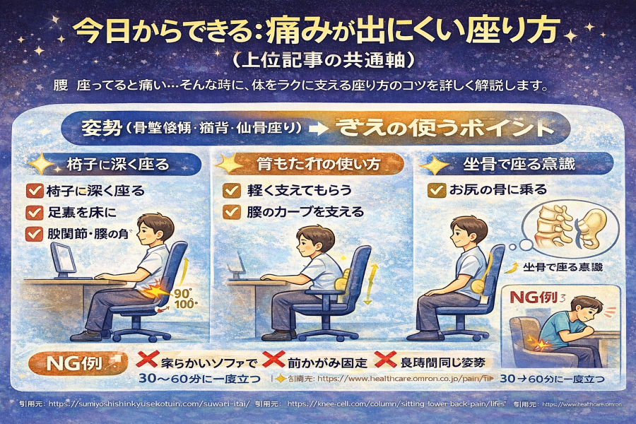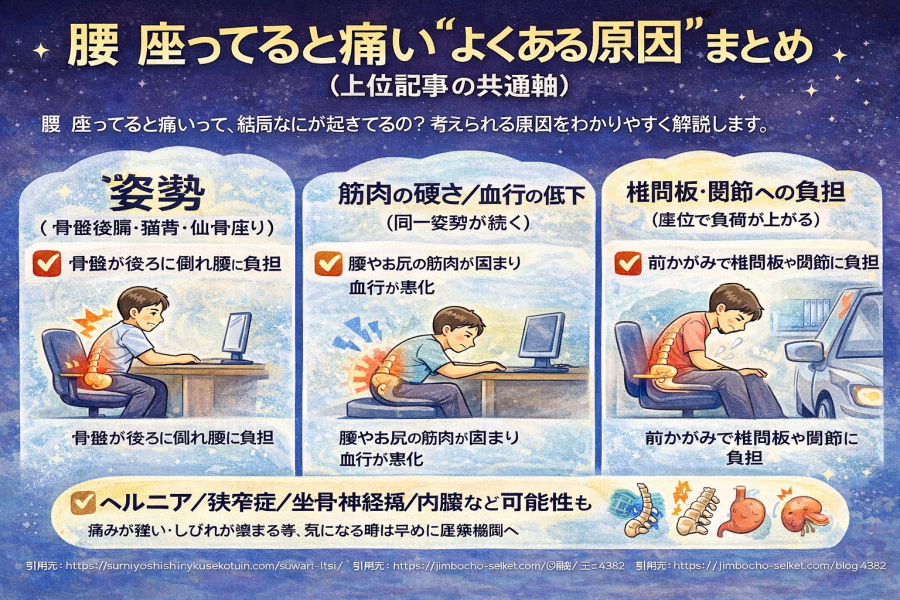 腰 座ってると痛い“よくある原因”まとめ(上位記事の共通軸)