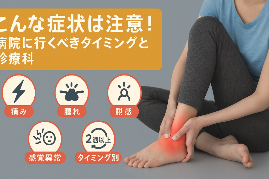 足が硬いだけならストレッチや生活改善で少しずつ和らぐこともありますが、**「痛み・腫れ・熱感・しびれ・感覚異常」**がある場合は注意が必要と言われています。特に、押しただけで激痛がある、じっとしていてもズキズキ痛む、足が熱を持っているなどは炎症や靭帯・関節の損傷の可能性があると考えられています。