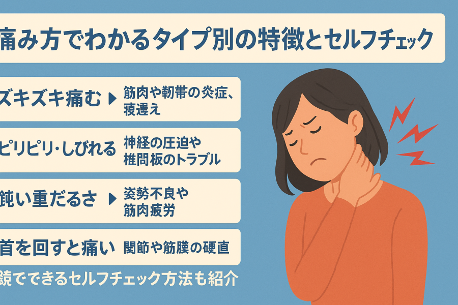 首の痛みが炎症反応によるものなのか、神経・筋肉・血管の問題なのかを見極めるために、血液検査やエコー検査を受けることが勧められています。