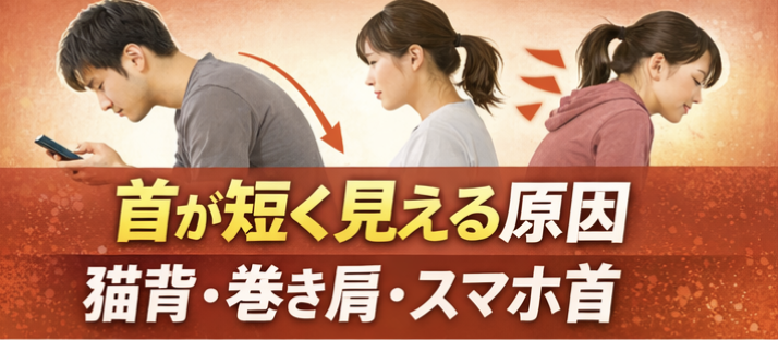 首が短く見える原因|猫背・巻き肩・スマホ首が関係する?